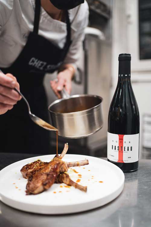 "Châteauneuf-du-Pape à l’âme révélée sur lièvre à la Royale, Chutney de betteraves caramélisées."